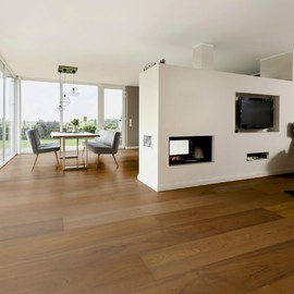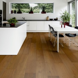 Экстраширокий размер и ультраматовое покрытие доски Hywood Noblesse подчеркивает красоту натурального дерева и хорошо смотрится в больших помещениях.