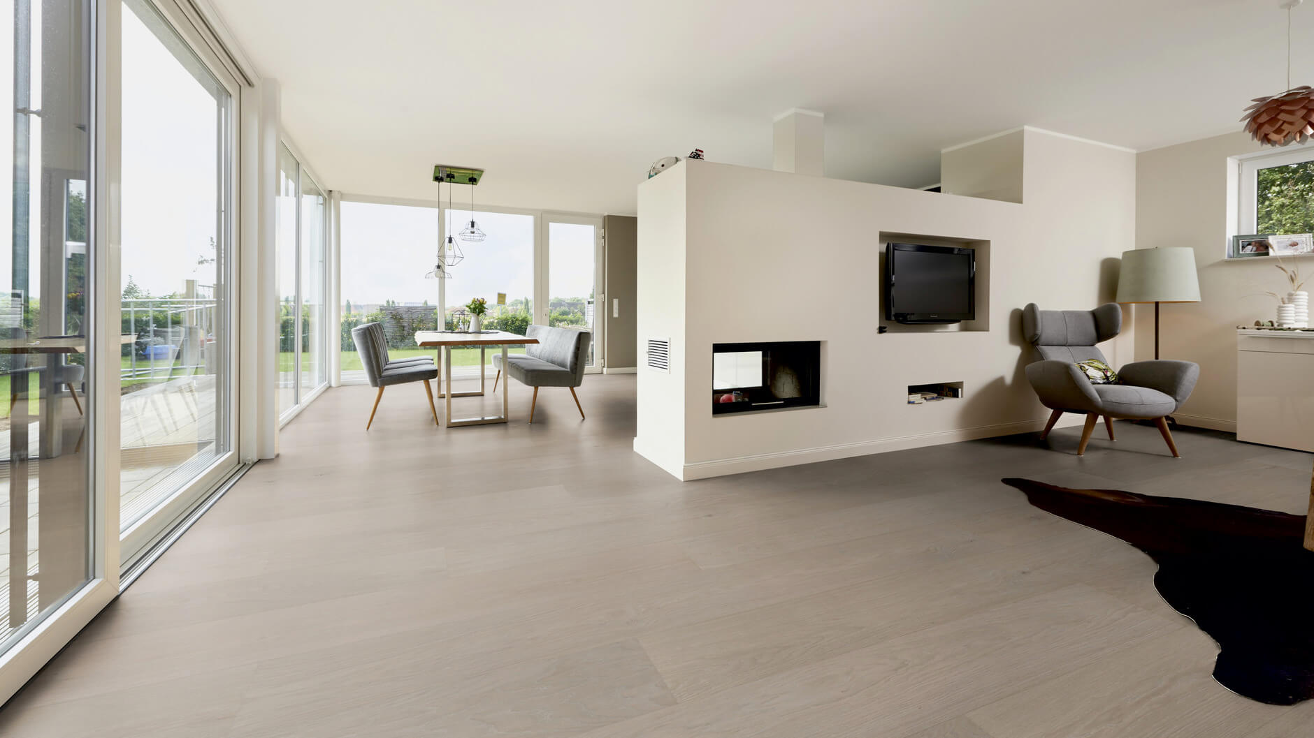 Экстраширокий размер и ультраматовое покрытие доски Hywood Noblesse подчеркивает красоту натурального дерева и хорошо смотрится в больших помещениях.