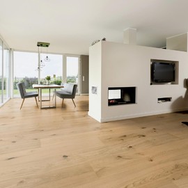 Экстраширокий размер и ультраматовое покрытие доски Hywood Noblesse подчеркивает красоту натурального дерева и хорошо смотрится в больших помещениях.