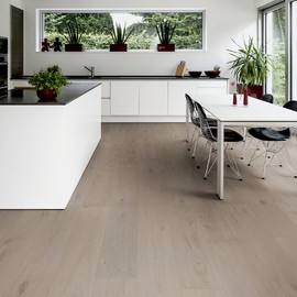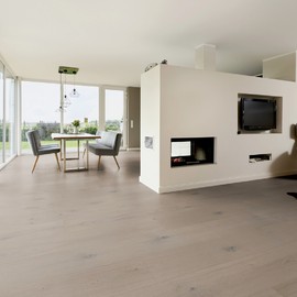 Экстраширокий размер и ультраматовое покрытие доски Hywood Noblesse подчеркивает красоту натурального дерева и хорошо смотрится в больших помещениях.