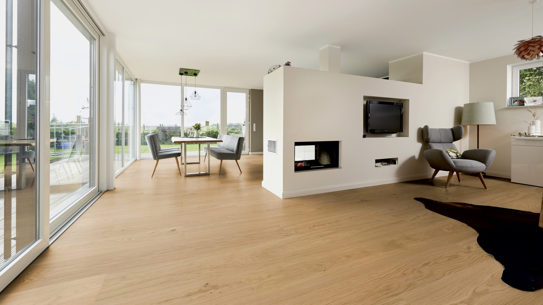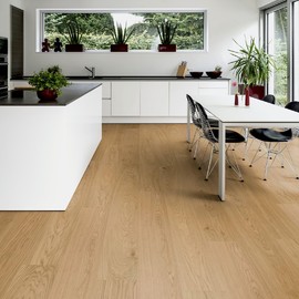 Экстраширокий размер и ультраматовое покрытие доски Hywood Noblesse подчеркивает красоту натурального дерева и хорошо смотрится в больших помещениях.