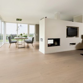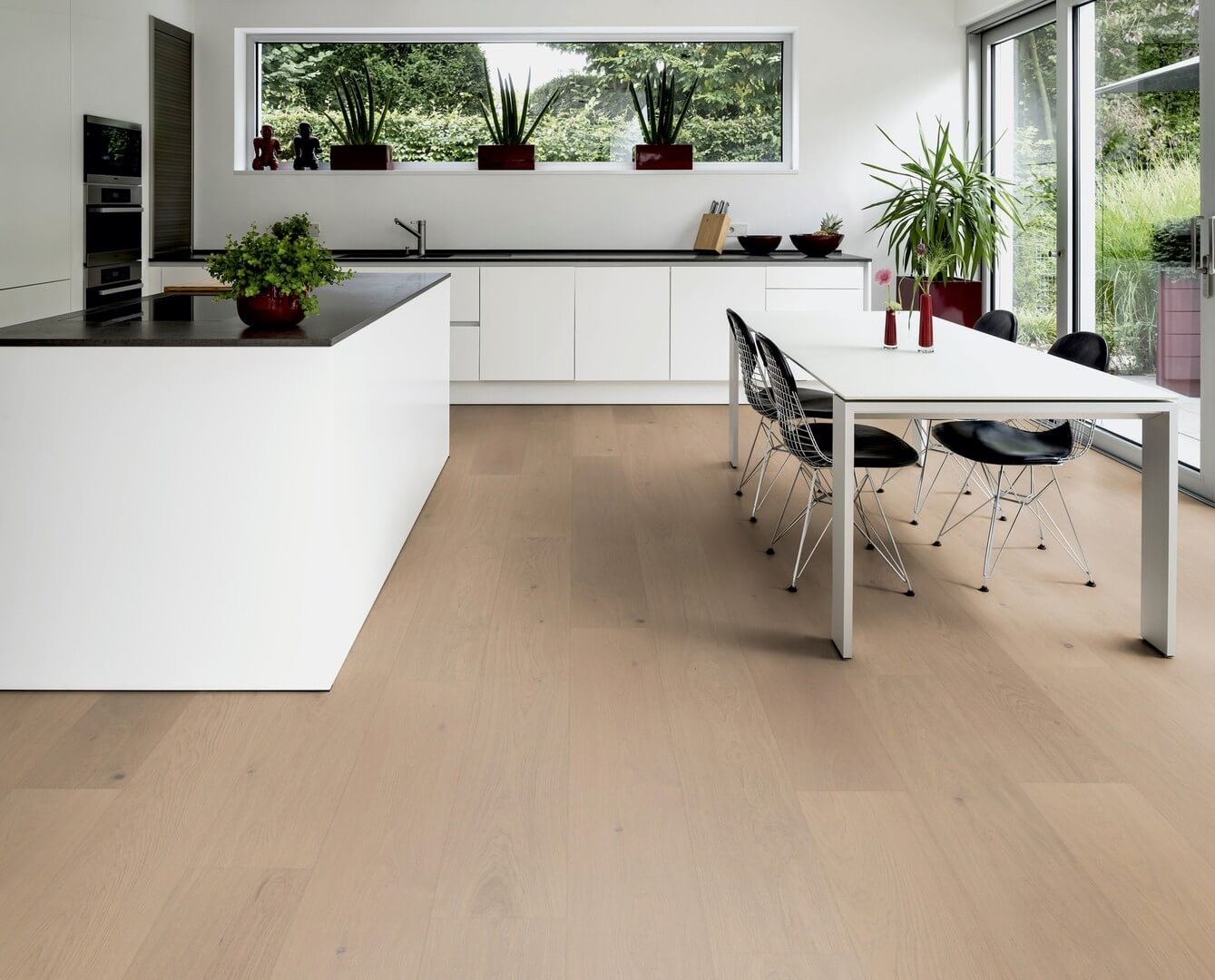 Экстраширокий размер и ультраматовое покрытие доски Hywood Noblesse подчеркивает красоту натурального дерева и хорошо смотрится в больших помещениях.