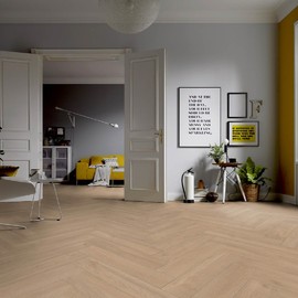 Ter Hurne Herringbone - это девять декоров в классическом формате 665x133x10 мм. Оттенки дуба в сочетании с укладкой «елочка» выглядят элегатно и стильно.