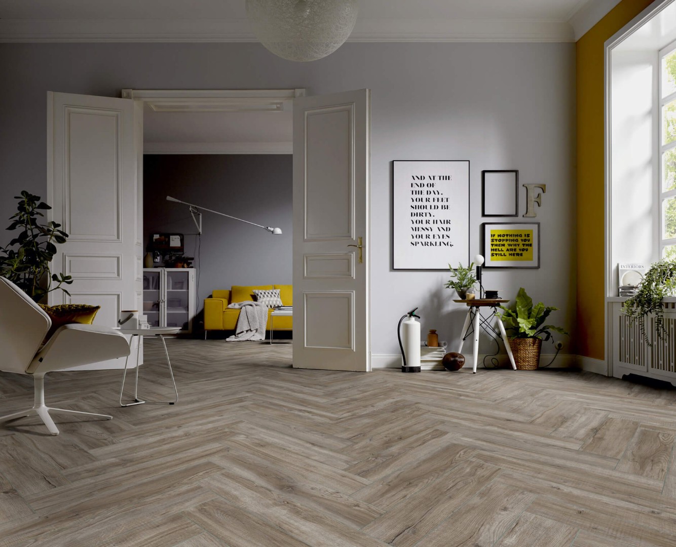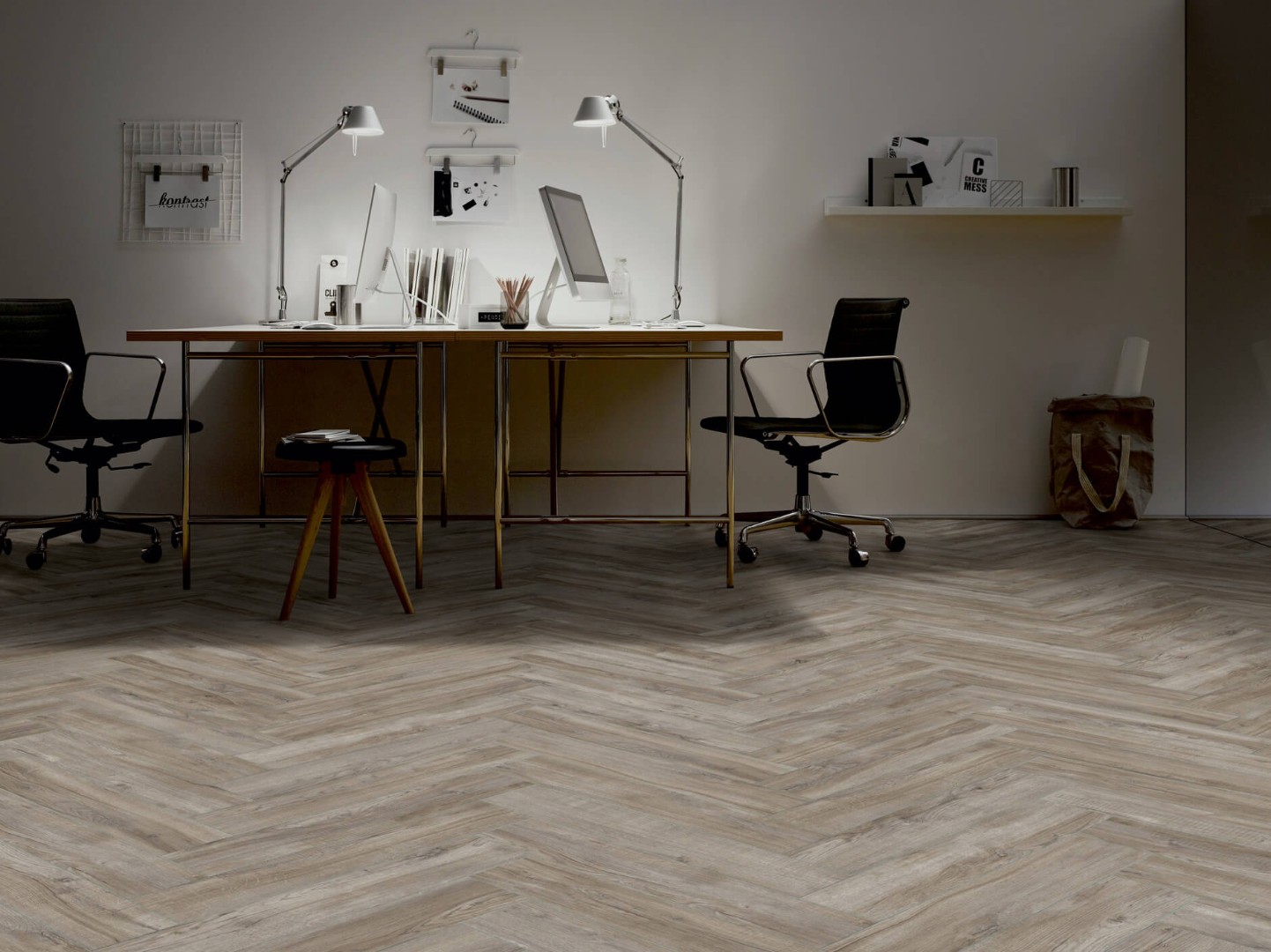 Ter Hurne Herringbone - это девять декоров в классическом формате 665x133x10 мм. Оттенки дуба в сочетании с укладкой «елочка» выглядят элегатно и стильно.