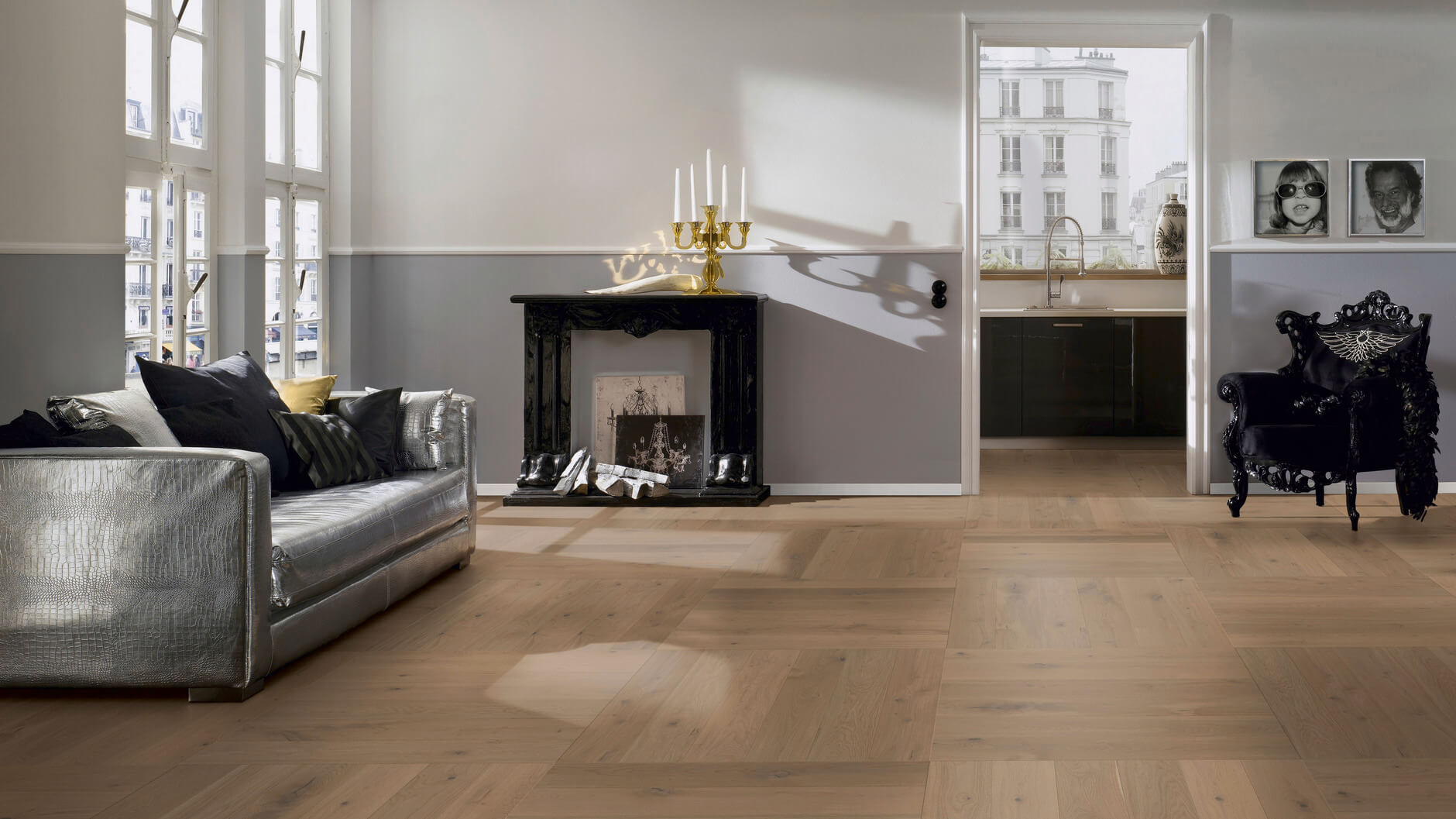 Системная планка Ter Hurne предлагает множество вариантов укладки паркета: трехрядная Английская Елочка с фризом по контуру, шахматным способом, плетеным способом и другие.