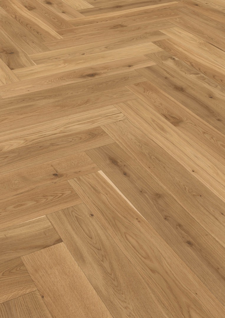 Паркетная доска Ter Hurne Английской Елочкой - воплощение классического паркета. Дополнительная фаска по периметру каждой доски производит особое впечатление. Паркетная доска Ter Hurne Английской Елочкой имеет одинаковый профиль - нет ни правой, ни левой доски, что значительно уменьшает отходы при укладке. Конструкция доски позволяет укладывать в однорядную и двухрядную паркетную доску Английской Елочкой.