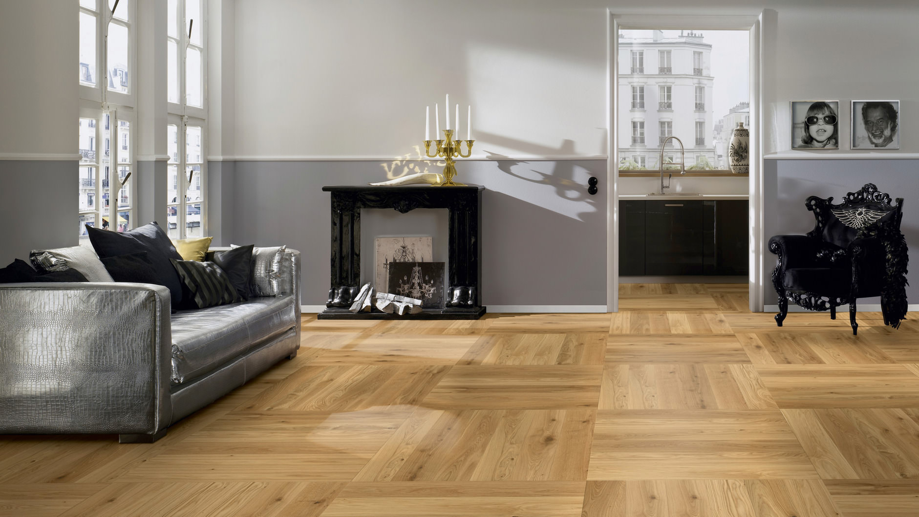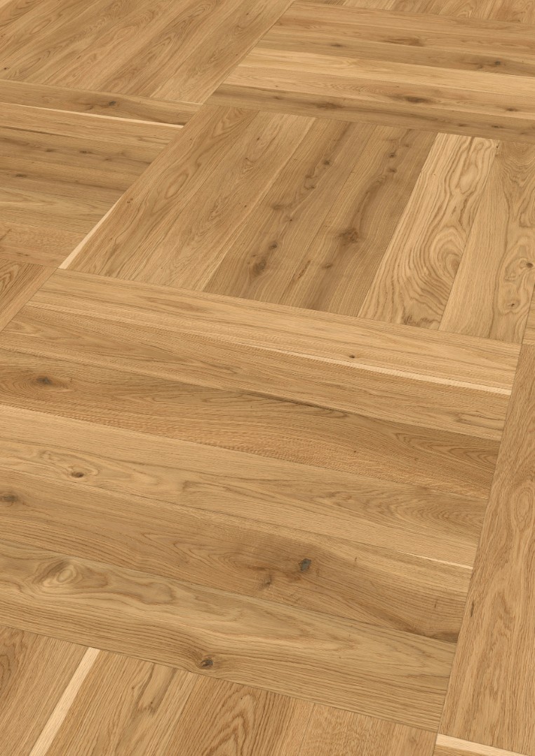 Системная планка Ter Hurne предлагает множество вариантов укладки паркета: трехрядная Английская Елочка с фризом по контуру, шахматным способом, плетеным способом и другие.