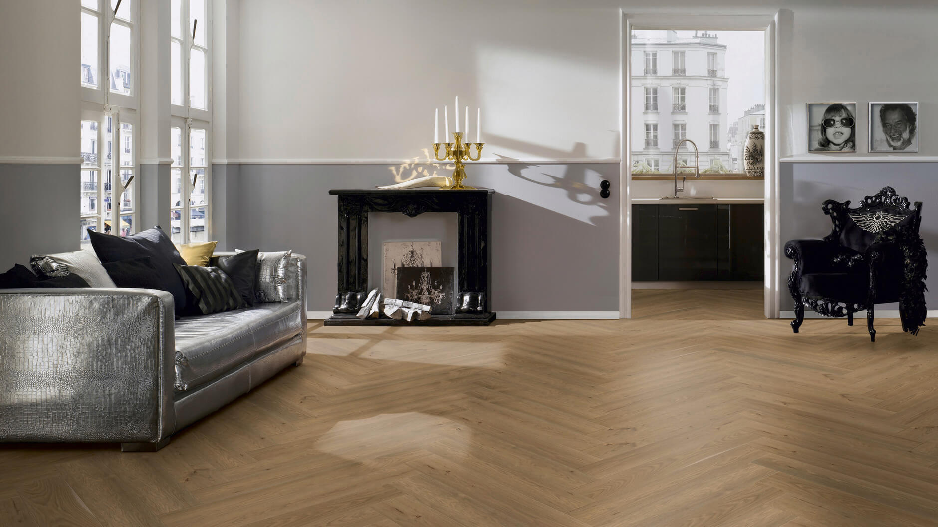 Паркетная доска Ter Hurne Английской Елочкой - воплощение классического паркета. Дополнительная фаска по периметру каждой доски производит особое впечатление. Паркетная доска Ter Hurne Английской Елочкой имеет одинаковый профиль - нет ни правой, ни левой доски, что значительно уменьшает отходы при укладке. Конструкция доски позволяет укладывать в однорядную и двухрядную паркетную доску Английской Елочкой.