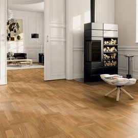 Трехполосная паркетная доска со специальными фасками из коллекции «Contours» создают неповторимый рисунок пола. Фаска подчеркивает каждую ламельку, из которой состоит паркетная доска, и создает неповторимый рисунок. Обработка щеткой и натуральным маслом дополнительно подчеркивают каждую доску. Результат - высококонтрастные акценты и эксклюзивный рисунок.