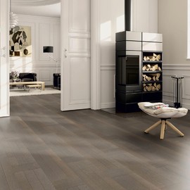 Трехполосная паркетная доска со специальными фасками из коллекции «Contours» создают неповторимый рисунок пола. Фаска подчеркивает каждую ламельку, из которой состоит паркетная доска, и создает неповторимый рисунок. Обработка щеткой и натуральным маслом дополнительно подчеркивают каждую доску. Результат - высококонтрастные акценты и эксклюзивный рисунок.