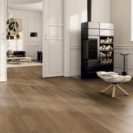 Трехполосная паркетная доска со специальными фасками из коллекции «Contours» создают неповторимый рисунок пола. Фаска подчеркивает каждую ламельку, из которой состоит паркетная доска, и создает неповторимый рисунок. Обработка щеткой и натуральным маслом дополнительно подчеркивают каждую доску. Результат - высококонтрастные акценты и эксклюзивный рисунок.