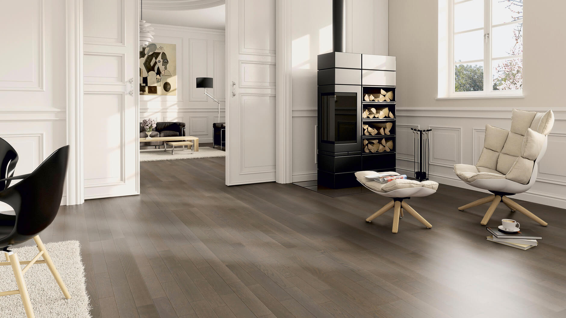 Трехполосная паркетная доска со специальными фасками из коллекции «Contours» создают неповторимый рисунок пола. Фаска подчеркивает каждую ламельку, из которой состоит паркетная доска, и создает неповторимый рисунок. Обработка щеткой и натуральным маслом дополнительно подчеркивают каждую доску. Результат - высококонтрастные акценты и эксклюзивный рисунок.